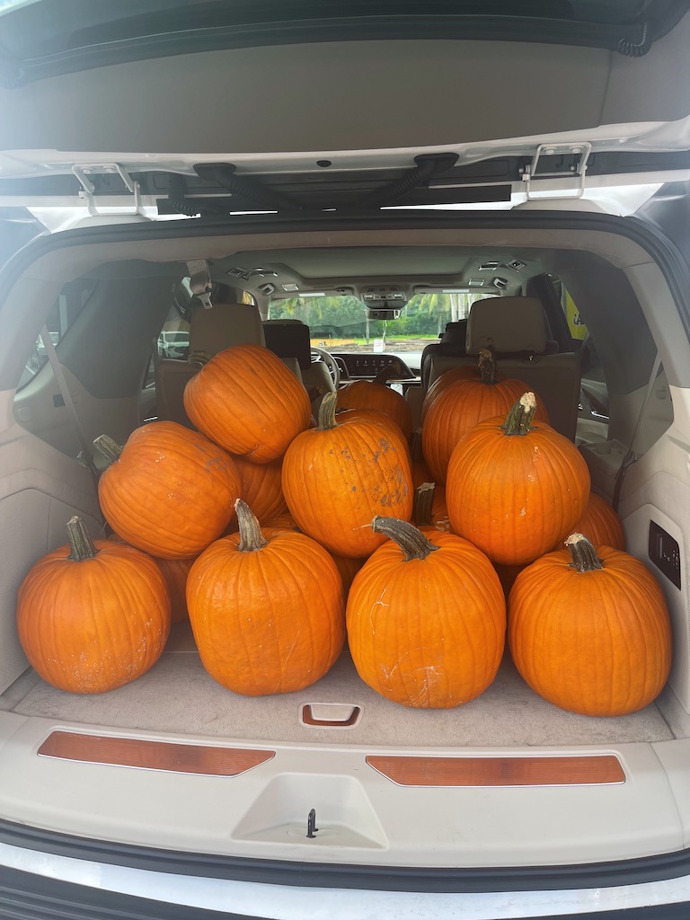 Each year I love to wrap my front yard landscape with pumpkins around the driveway. Here is this years!